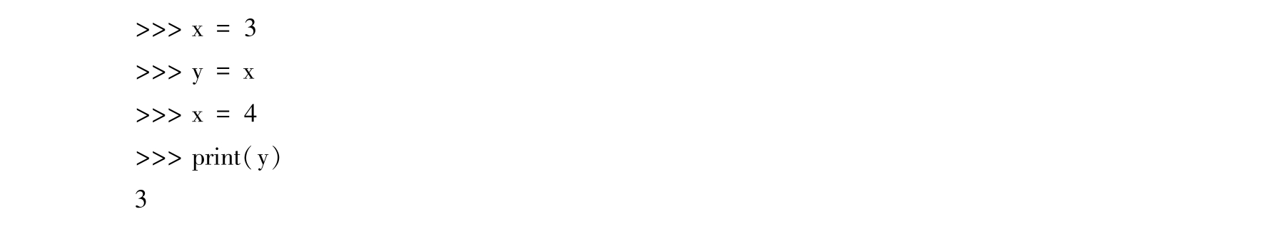 执行x=3,解释器创建了整数3和变量x,并把x指向整数3;执行y=x,解释器创建了变量y,并把y指向x指向的整数3;执行x=4,解释器创建整数4,并把x的指向改为整数4,但y的指向并没有更改,因此程序最后的输出结果是3。