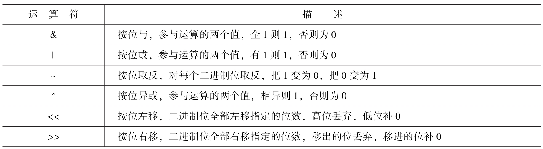 计算机内所有的数都以二进制的形式进行存储,位运算就是把数字转换为二进制数字来进行运算的一种运算形式。Python支持的位运算符有如下6个。