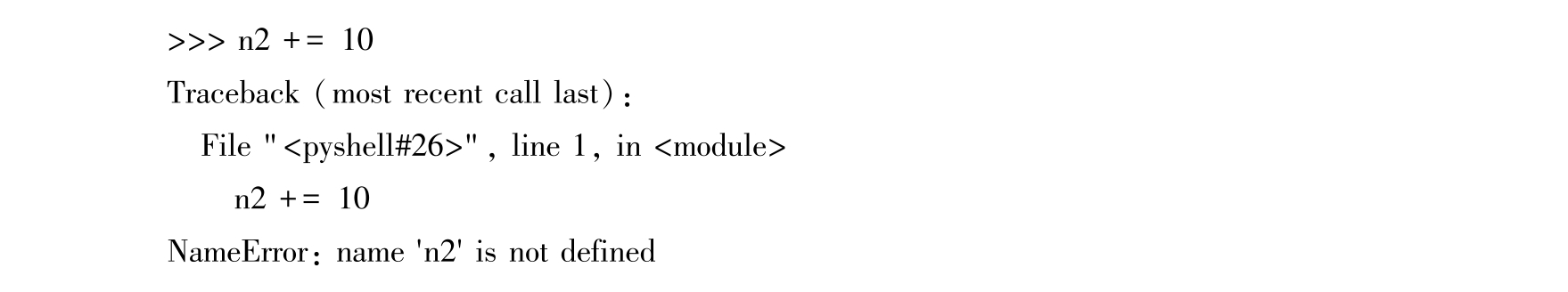 该表达式等价于n2= n2 + 10,由于n2没有提前定义,其值是未知的,因此它不能参与加法运算,否则程序会报错。