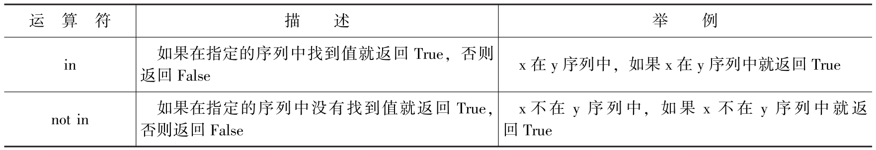 成员运算符用于判断一个成员是否在容器类型对象中,具体描述如表2-5所示。