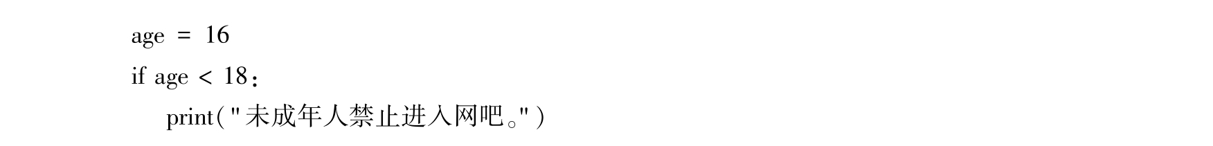 【例3-1】 未成年人禁止进入网吧,如果年龄小于18岁,则输出“未成年人禁止进入网吧。”。