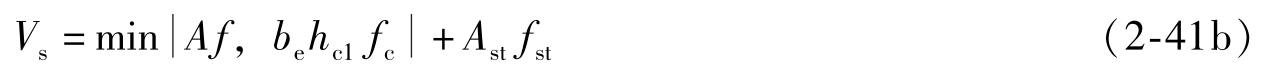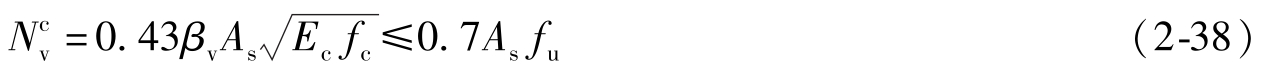 )时,按式(2-38)算得的一个栓钉的受剪承载力设计值见表2-4。由表2-4可见,一般楼板混凝土强度等级为C30或高于C30时,栓钉的受剪承载力取决于