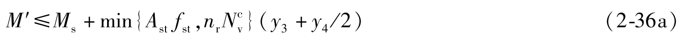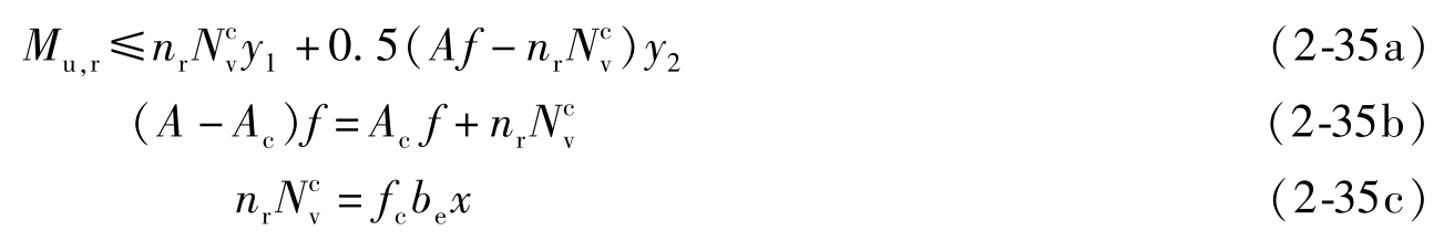 (2)部分抗剪连接组合梁的强度计算 假定混凝土翼板与钢梁之间为具有可靠连接的整体组合梁,同时在叠合面上剪跨区段内的纵向剪力完全由抗剪栓钉承担,且栓钉数量按计算要求设置,此时组合梁称为完全抗剪连接的组合梁。当上述抗剪栓钉的实际设置数量 n r 小于完全抗剪连接的计算数量 n f ,但 n r / n f >50%时,此时组合梁称为部分抗剪连接的组合梁。