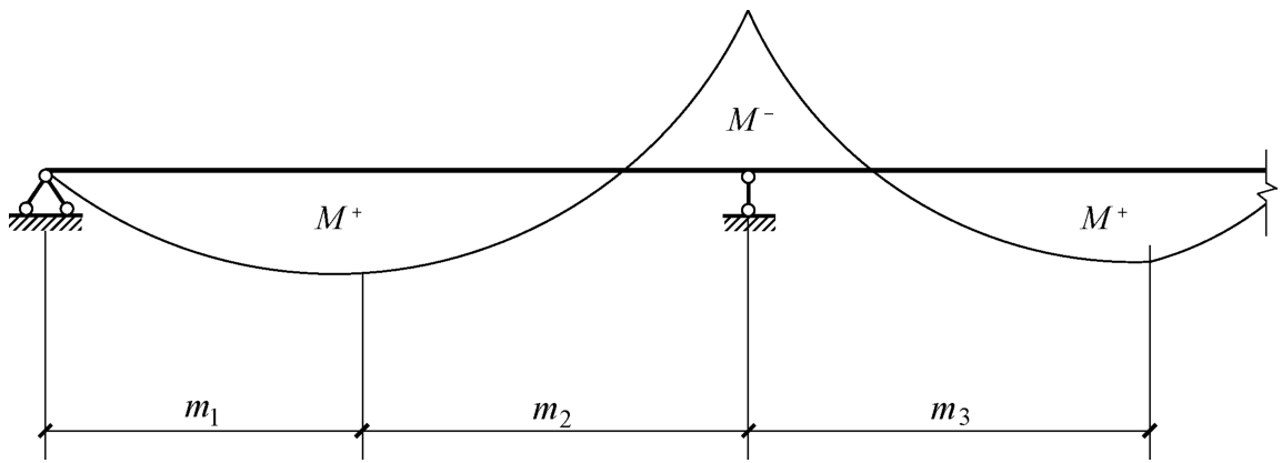 正弯矩最大点到边支座区段,即 m 1 区段