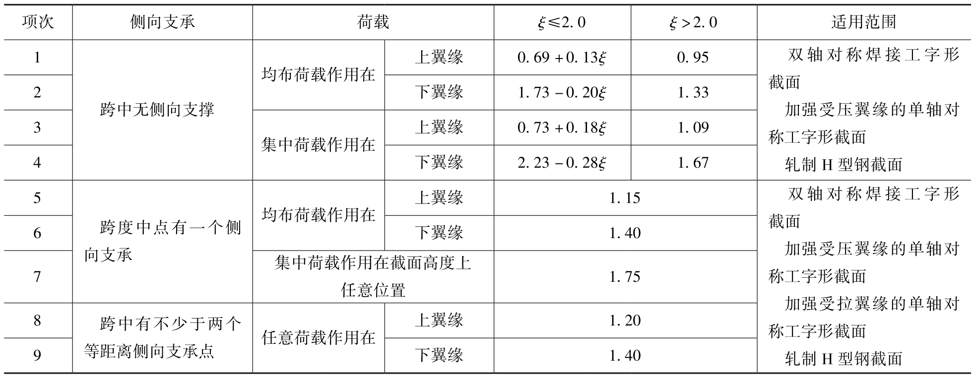 3.表中项次8、9的 β b ,当集中荷载作用在侧向支承点处时,取 β b =1.2。