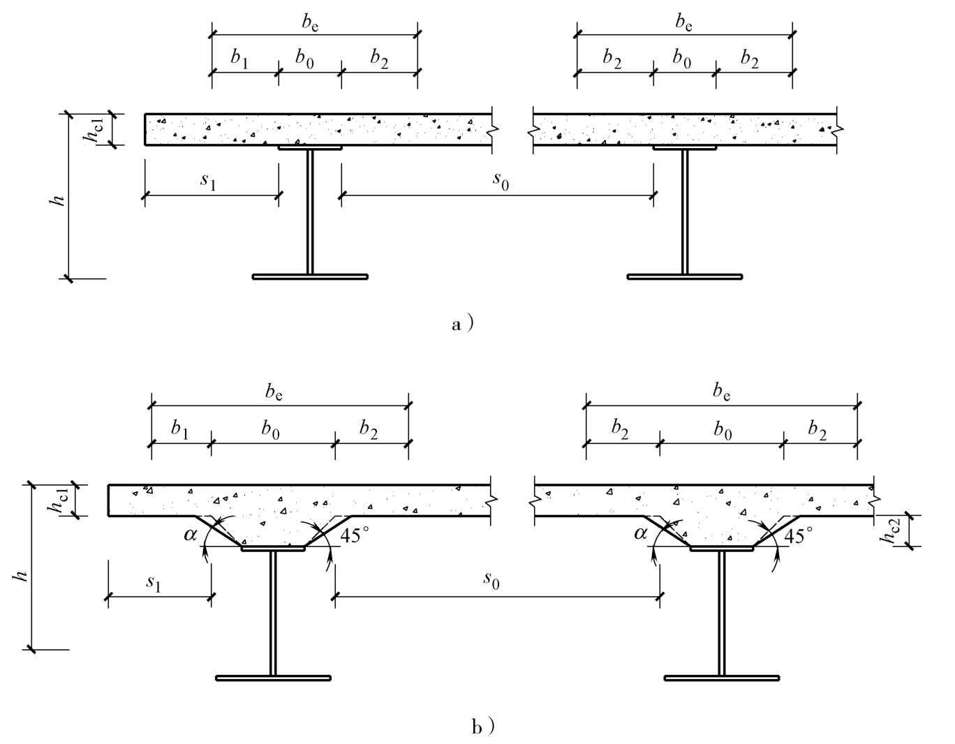 a)不设板托的组合梁 b)设板托的组合梁