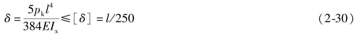 (3)挠度验算 简支梁跨中最大挠度 δ 按下式计算: