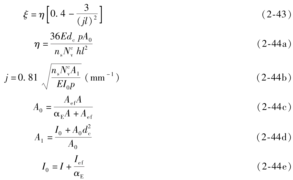 α E ——钢梁与混凝土弹性模量的比值,当按荷载的准永久值组合进行计算时,式(2-44c)和式(2-44e)中的 α E 应乘以2。