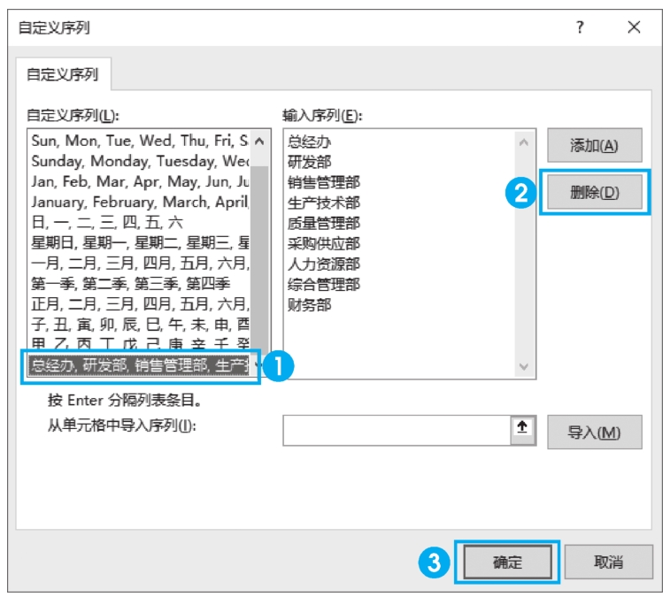 ●图2-18 删除自定义序列
