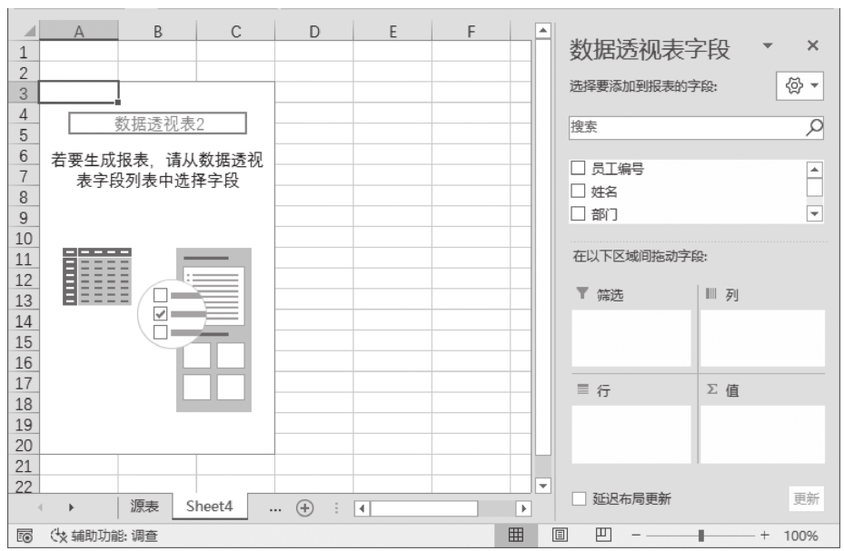 这样会生成一个新的工作表,里面有空白数据透视表,见图2-30。