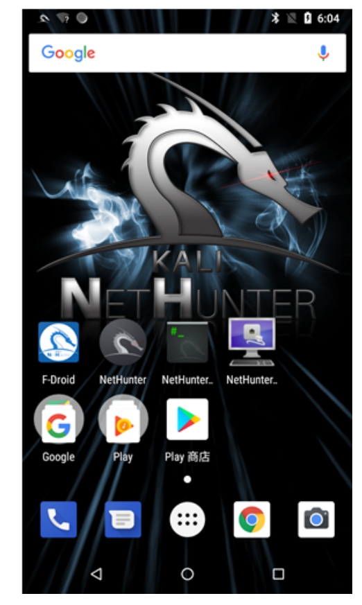 重新进入TWRP,按照同样的步骤刷入Kali NetHunter。这个过程可能会很长,刷入成功后重启,Kali NetHunter界面如图1-19所示。