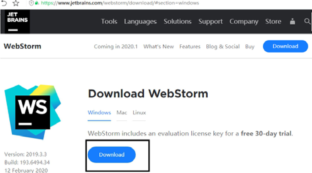 图2-2 WebStorm官网下载页面