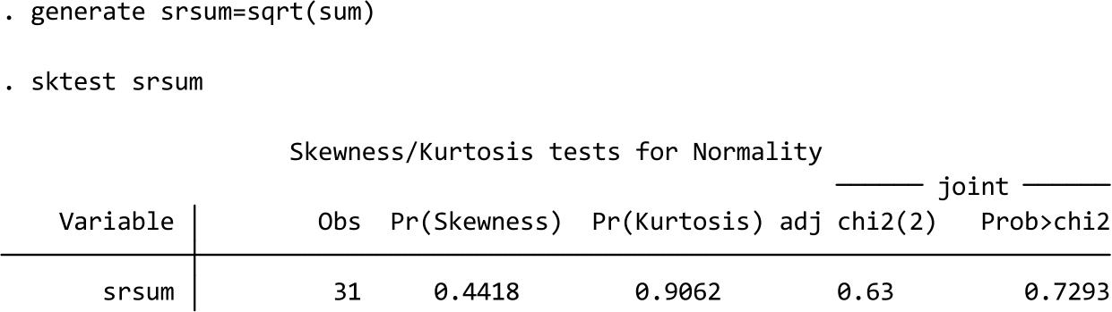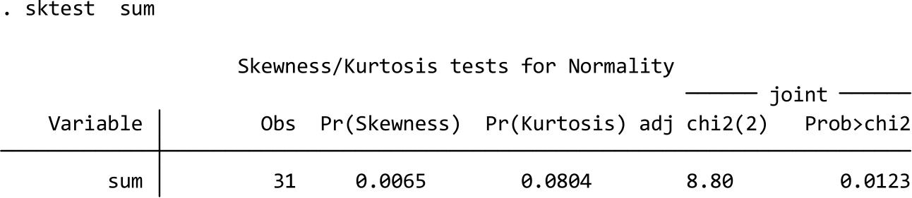 · sktest srsum:对获取的新数据srsum进行正态分布检验。
