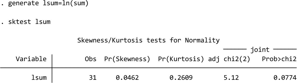 · sktest lsum:对获取的新数据lsum进行正态分布检验。
