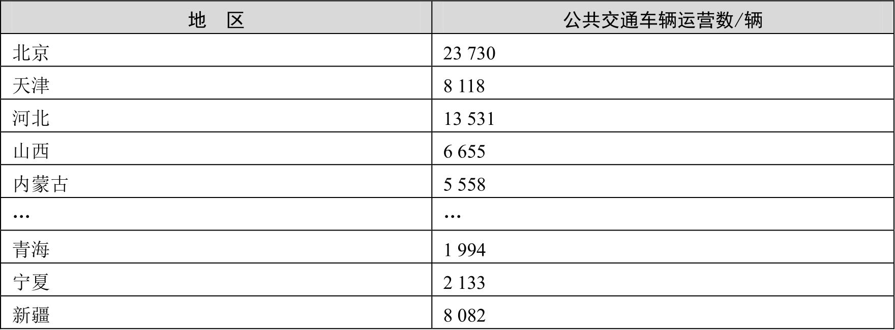 表3.3 我国2009年各省市公共交通车辆运营数据
