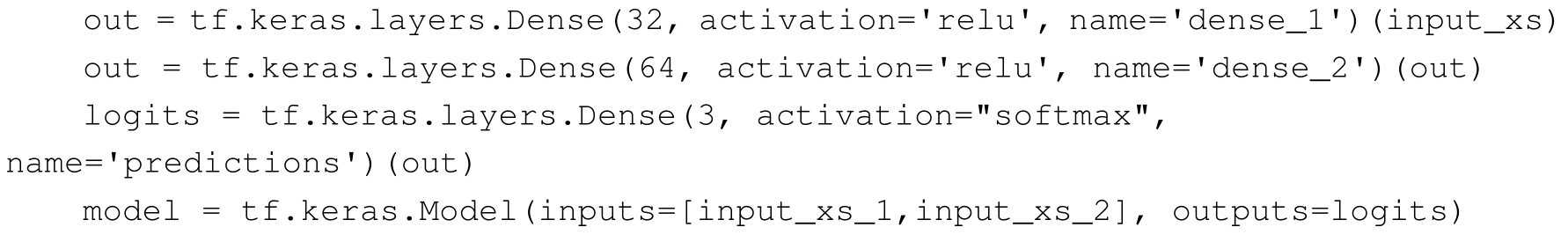predictions = tf.keras.layers.Dense(3, activation='softmax')(x)