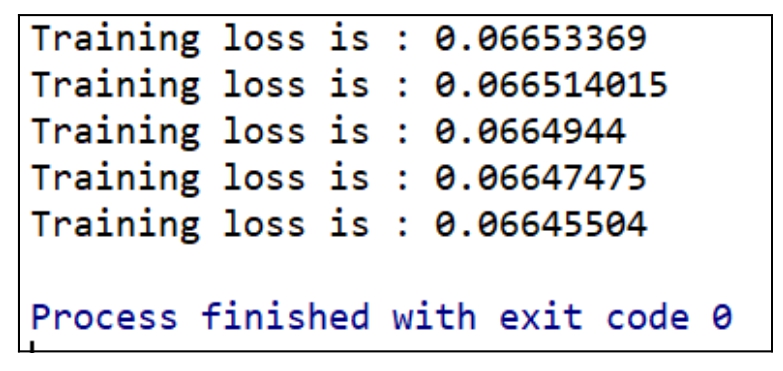 最终打印结果如图2.6所示。可以看到,损失值在符合要求的条件下不停地降低,以达到预期目标。