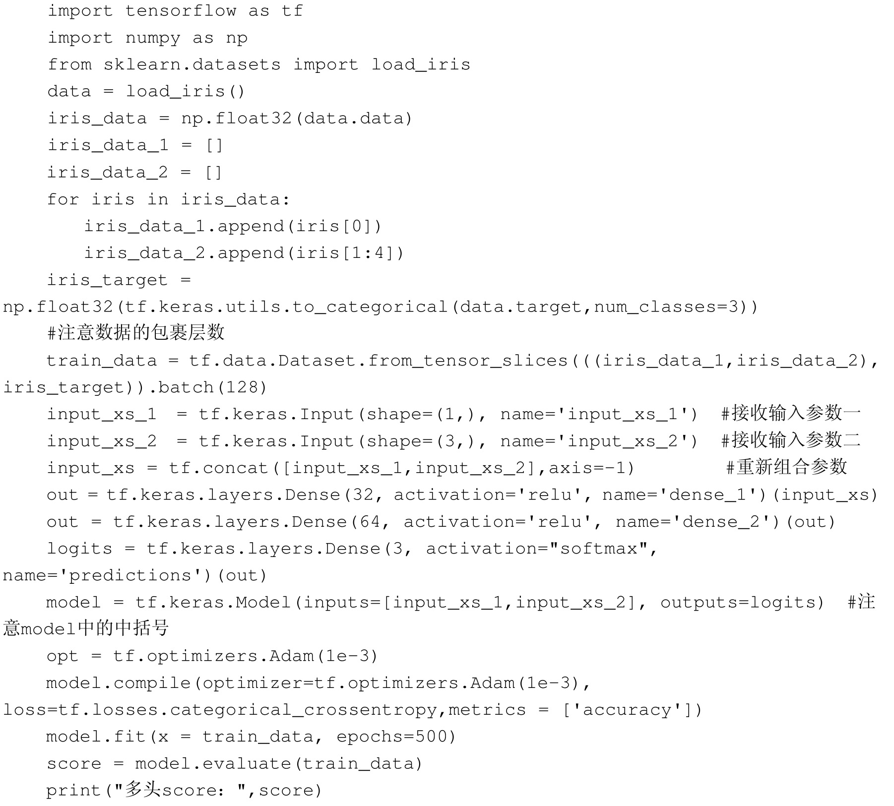 下面还是以iris数据集为例讲解多数据输入的问题。