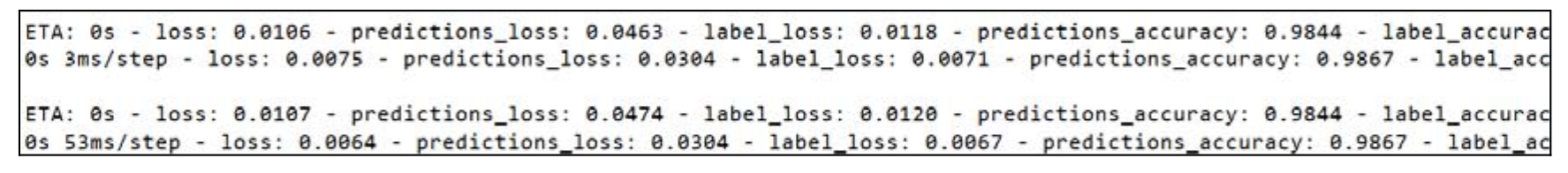 可以看到,数据在读取和载入的过程中没有变化,将处理后的数据直接输入fit函数中供模式使用。此时由于是直接对数据进行操作,因此对数据的划分由fit函数负责,fit函数中的batch_size被设定为128。