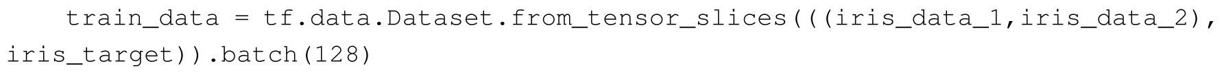 注意小括号的位置,这里显式地将数据分成两部分,即输入与标签。而多输入的部分使用小括号打包在一起形成一个整体。
