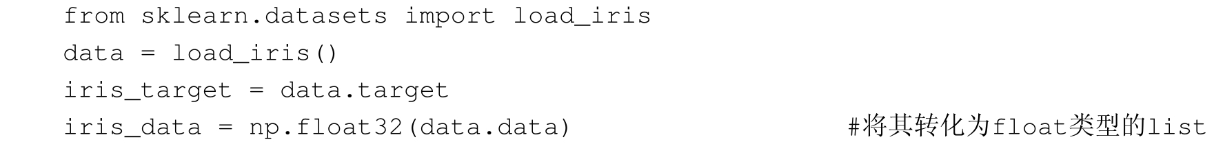 由于本例中需要iris的特征与分类目标,因此这里只需要获取data和target,代码如下: