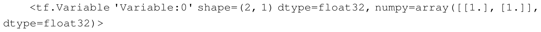 这里对参数的定义使用的是Variable函数,而对输入值的定义使用的是constant函数,将其对应内容打印如下: