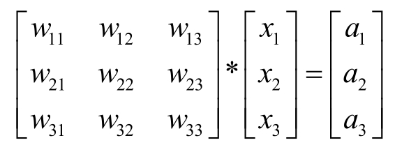 w 31× x 1+ w 32× x 2+ w 33× x 3= a 3