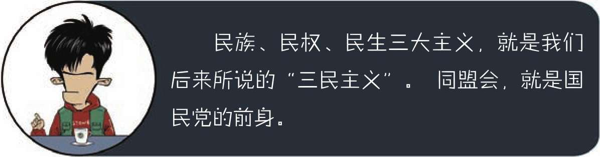 于是他以民族、民权、民生为口号,集结了一群人,成立了 中国同盟会 。