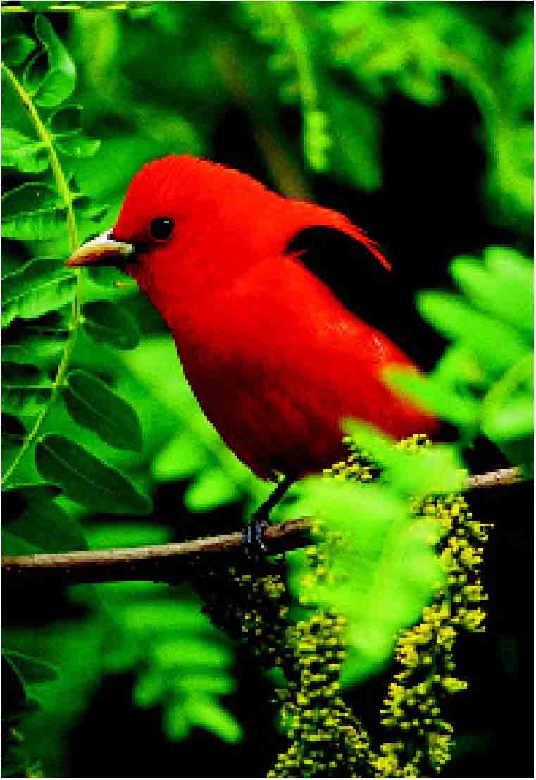 雀形目鸟或“栖树鸟”以约5900种的数量占据了全球鸟类种数的半壁江山,其分布遍及除极地外的世界各大洲。图中为猩红比蓝雀,一个美洲的留鸟种类。