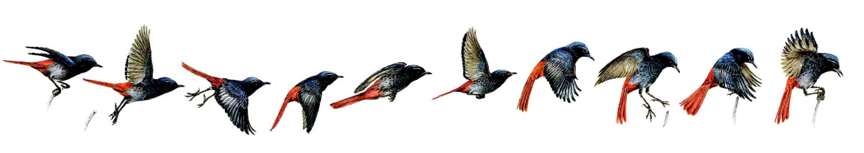 大多数鸟类首先通过垂直向上跃入空中来实现起飞。然后它们利用强有力的翅膀和胸肌使自己向前推进,同时产生提升力。在飞行过程中,鸟的腿部缩起,形成符合空气动力学的高效体型,将阻力降低到最低限度。当飞行放缓时,鸟便通过扇动尾部和下垂腿部来增加阻力。在即将着陆的那一刻,鸟的翅膀扑动,使整个躯体几乎垂直翘起,就此“刹车”。