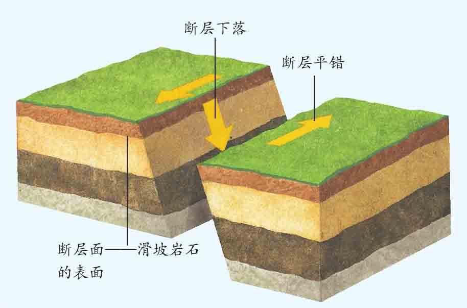 由于地壳的剧烈运动(如发生地震),岩石层中的巨大岩石会产生层间滑动或者断层错动,它们的移动速度非常慢,大约只有几毫米,慢慢累积起来,会有几米的距离。经过数百万年后,连续不断的地壳运动会使岩层上升或下降很大的距离。加利福尼亚州的内华达山脉就是由于地壳的抬升以及伴随的断层运动形成的断层山,内华达山脉巍峨险峻,陡峭处海拔约3350米,山脉绵延数百千米。
