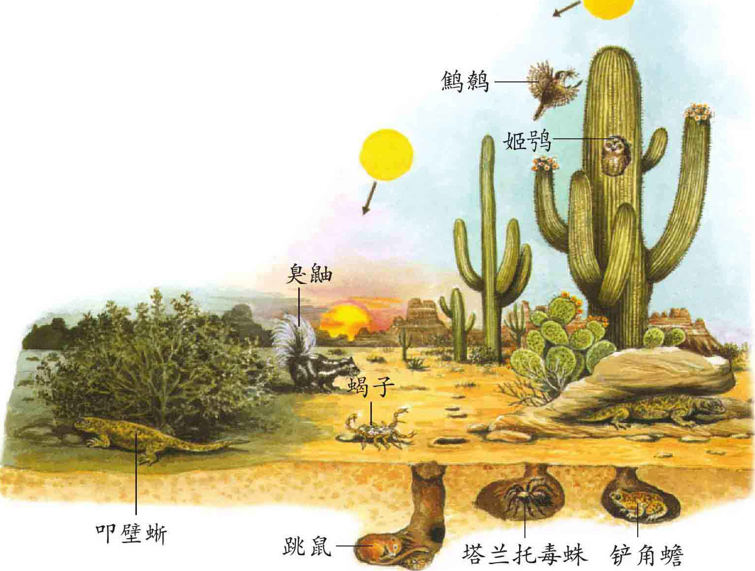 晚上,沙漠要凉快得多,空气变得也较为潮湿。许多动物纷纷出来觅食。