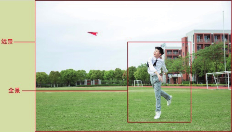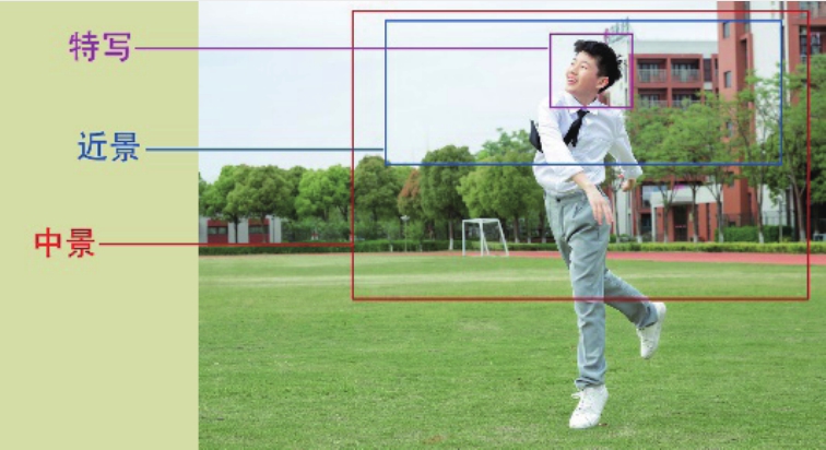 景别即镜头拍摄的类别,是被摄主体在画面中所占据的大小和范围,一般可以划分为远景、全景、中景、近景、特写五种类型,如图2-36和图2-37所示。不同的拍摄距离会产生不同的景别,并呈现不同的画面效果和感情表达能力。下面以拍摄人物对象为例,详细介绍五种景别的含义。