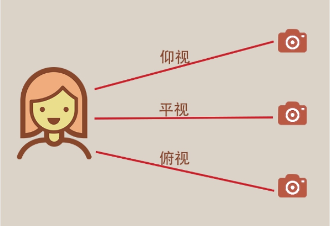 即拍摄时的镜头角度,一般可分为平视、仰视和俯视三种类型,如图2-52所示。