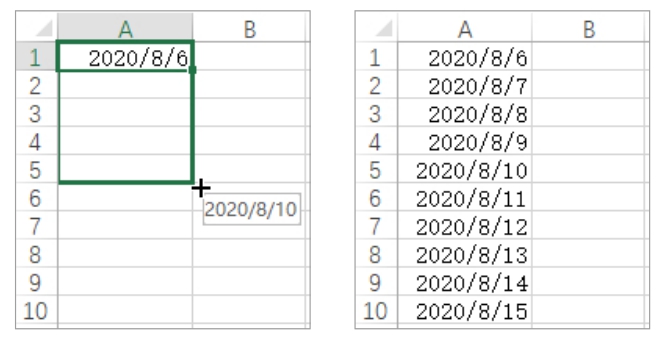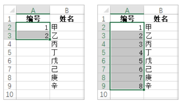 图2-10 输入序列的前两个值后拖动填充柄