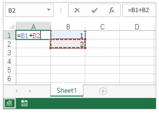 点模式只有在输入公式时才会出现。在公式中输入等号或运算符后,按键盘上的方向键或单击任意一个单元格,都会进入点模式,此时状态栏的左侧显示“点”,如图2-7所示。在点模式下,当前选中的单元格的边框将变为虚线,该单元格的地址会被自动添加到公式中的等号或运算符的右侧。
