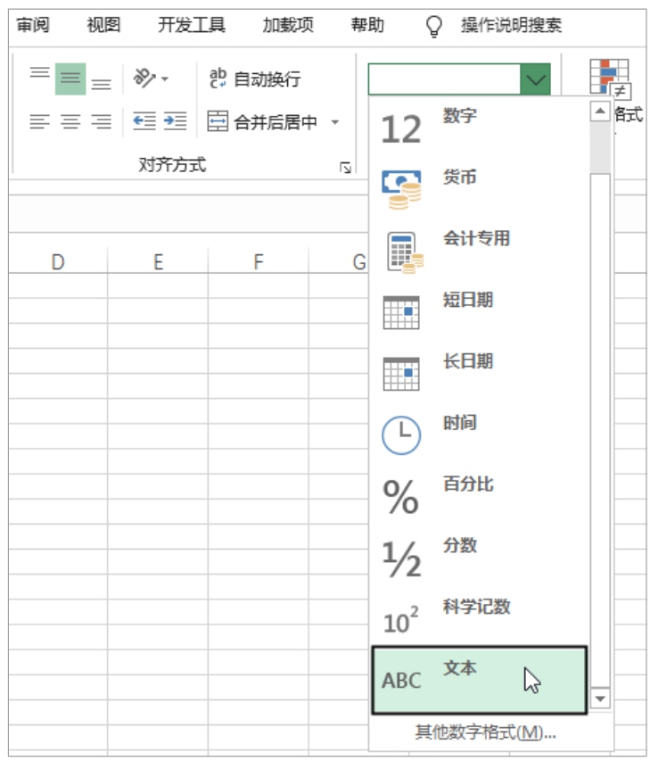 图2-14 将单元格设置为文本格式
