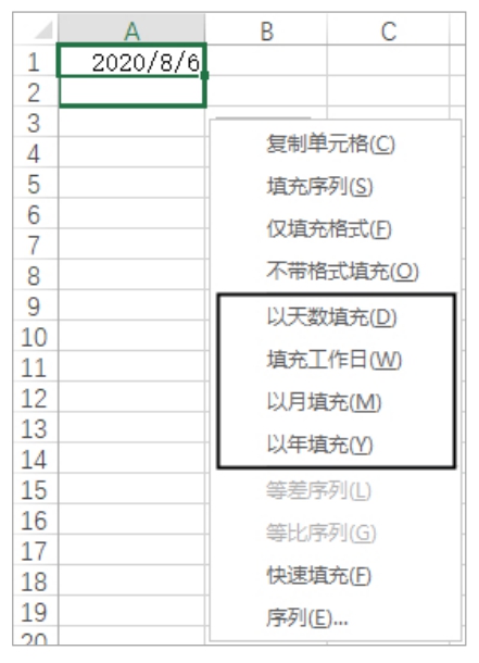 图2-17 使用多种方式填充日期