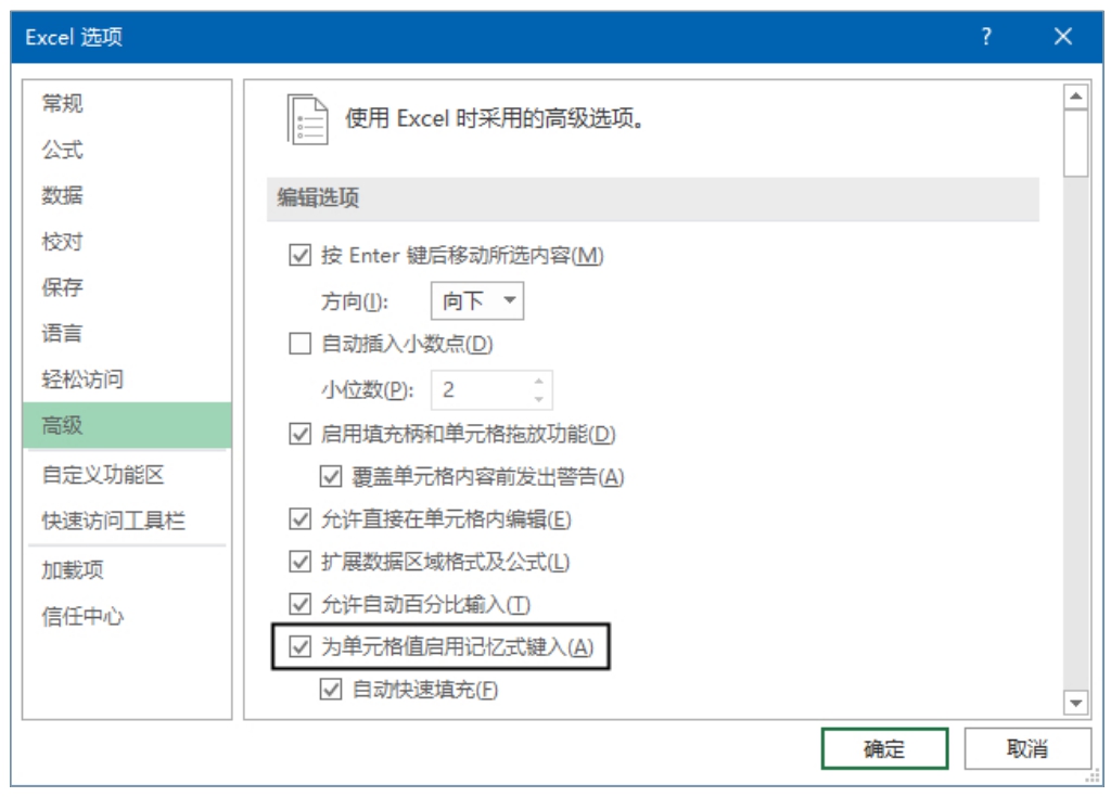 · “记忆式键入”功能只对文本有效,对数值和公式无效。