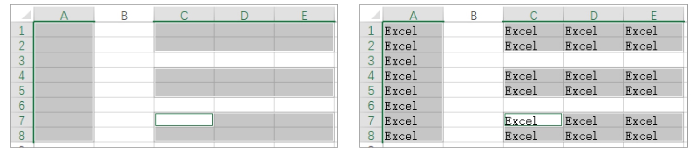 如果要在多个单元格中输入相同的内容,可以选择这些单元格,它们可以是连续或不连续的区域,然后输入所需内容,最后按Ctrl+Enter快捷键,输入的内容将同时出现在选中的每一个单元格中,如图2-20所示。