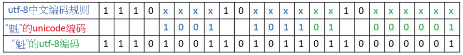 从上图可以得到“ 魁 ”的utf-8编码结果是0xe9ad81。