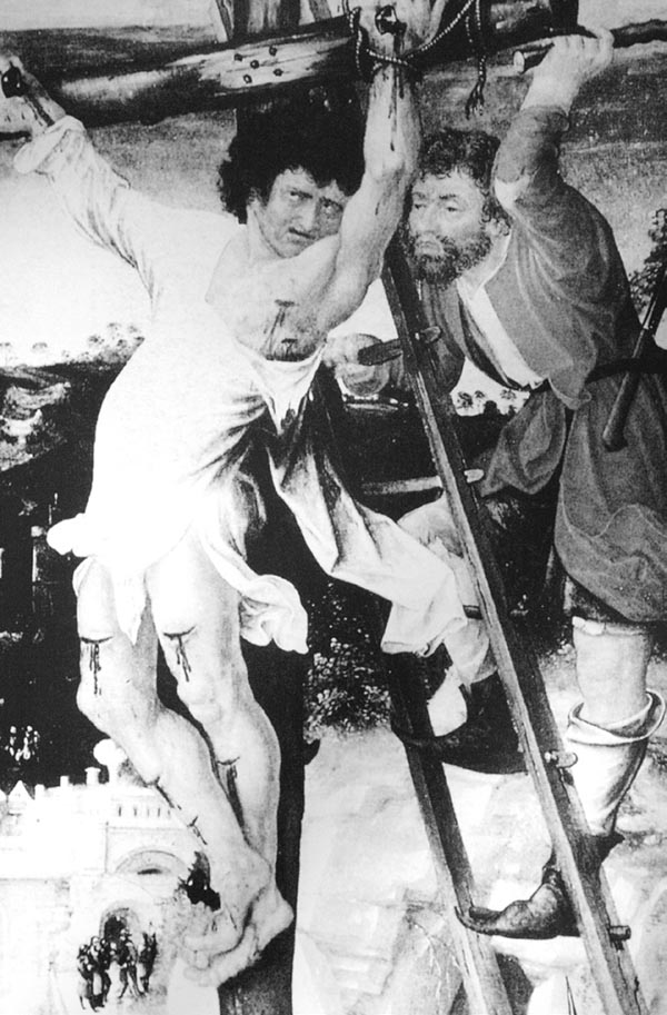 尽管十字架刑几乎快变成罗马独特的刑罚,但它也是早期犹太人常用的一种处决方式,而且有很多不同版本——常被称为“吊在一棵树上”(《旧约》有所记载)。从《圣经》的语言中很难判断这些死刑究竟是传统绞刑,还是简单地把犯人绑在树上,使其死于风吹日晒。