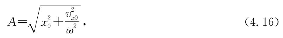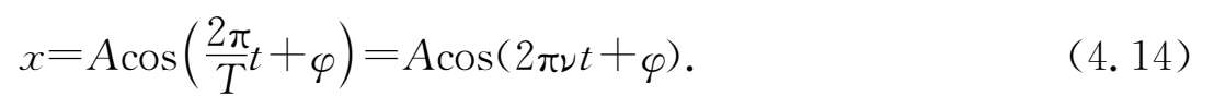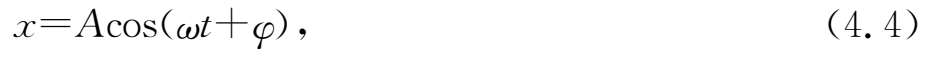 运动方程(4.4)式中除圆频率由系统固有特征所确定外,还有两个待定常数.其中正数 A 是物体偏离平衡位置的最大位移,称为 振幅 .对于一些非机械运动的简谐振动,其振幅不是长度量,故 A 可以具有其他的量纲.