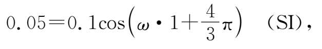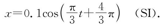 例4.2 已知物体做简谐振动时,最大位移为10cm.开始振动时,物体处于-5cm的位置,且向正方向运动,而当 t =1s时,物体第一次处于5cm处.试写出物体的振动方程.
