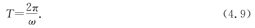 圆频率(频率、周期)由描述系统固有特征的一些物理量决定.对于弹簧振子,这些物理量是质量和弹性系数,其中质量是振动系统惯性的反映,而弹性系数是系统所受线性回复力的反映.对于单摆,它取决于摆球和地球之间的万有引力,此时的系统由摆球和地球构成,而表征这个系统特征的量是摆长和重力加速度.由于引力的特性是引力质量与惯性质量相等,故在(4.11)式中,二者消去了从而不出现.