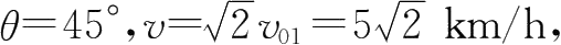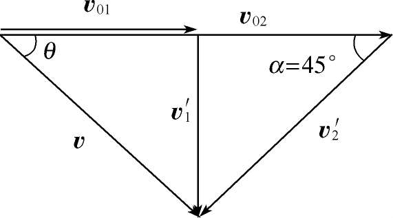 此外,根据已知条件 v 02 =2 v 01 和 α =45°,由几何关系易得