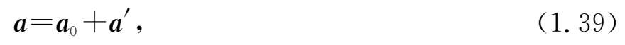 式中 v 、 v' 、 v 0 分别表示绝对速度、相对速度和牵连速度.将(1.38)式两边对时间再求一次导数,得到