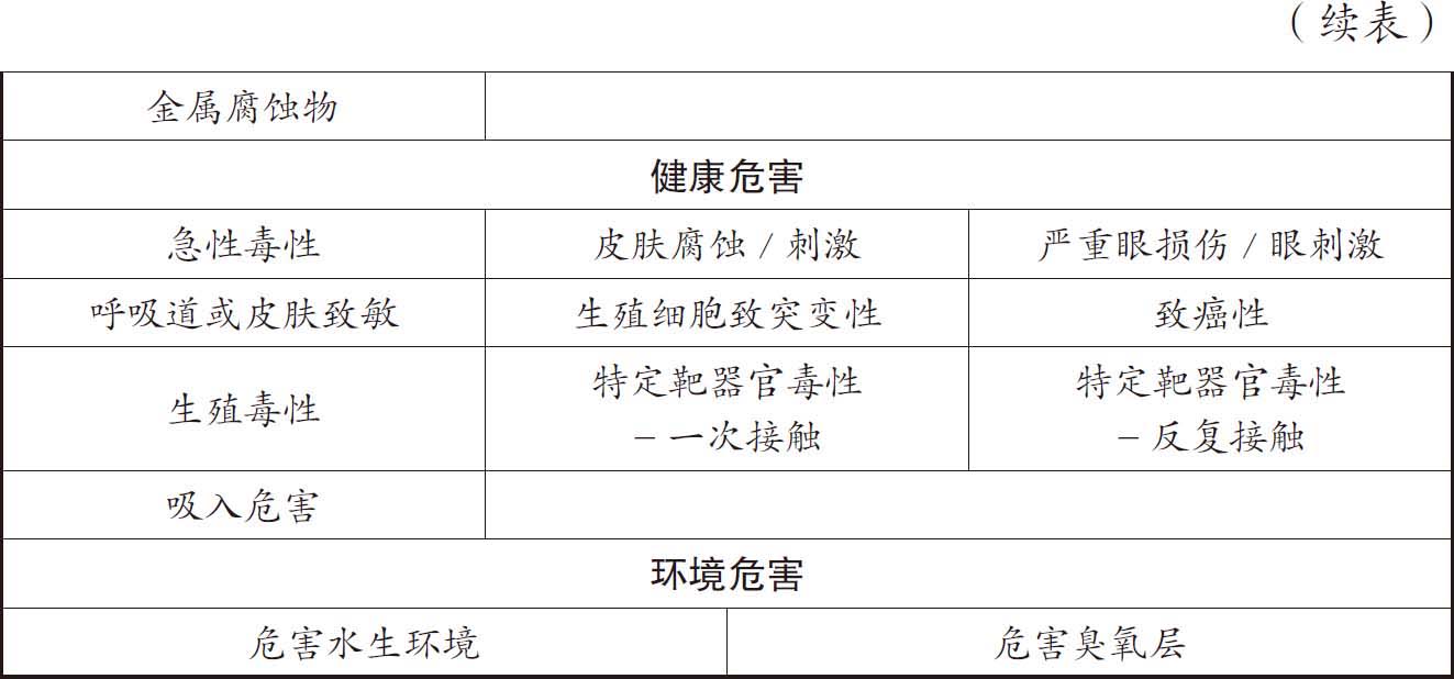 本类化学品系指能灼伤人体组织并对金属等物品造成损坏的固体或液体。如与皮肤接触在4 h内出现可见坏死现象,或温度在55 ℃时,对20号钢的表面均匀年腐蚀率超过6.25 mm的固体或液体。