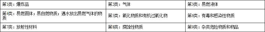 第8类:腐蚀品。腐蚀品是指能灼伤人体组织并对金属等物品造成损坏的固体或液体。腐蚀品有些本身能着火,有的本身并不着火,但与其他可燃物品接触后能着火。该类按化学性质分为三种:酸性腐蚀品,如浓硫酸、硝酸;碱性腐蚀品,如氢氧化钠溶液;其他腐蚀品。