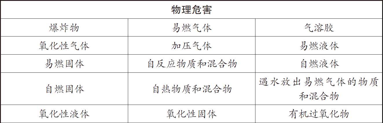 《全球化学品统一分类和标签制度》(GHS)将化学品的危害分为物理危害、健康危害和环境危害三大类。GHS是由联合国出版的指导各国控制化学品危害和保护人类健康与环境的规范性文件。在2002年12月召开的联合国危险货物运输和全球化学品统一分类及标签制度专家委员会首次会议上,通过了第一版GHS文件。2003年7月,联合国正式出版第一版。该委员会每年召开两次会议讨论GHS的相关内容,每两年更新一次,目前最新版本是2019年的第八修订版。其目的是通过提供一种全球统一的化学品危险性分类标准,以及统一的危险性公示制度来表述化学品的危害,提高对人类健康和环境的保护,同时减少对化学品的测试和评估,促进国际化学品贸易便利化。各个国家可以采取“积木式”方法,选择性实施符合本国实际情况的GHS危险种类(class)和类别(category)。目前GHS制度已将危险化学品扩充为29大项(新增退敏爆炸物)。但我国危险化学品确认原则依旧只包含28大项,是将化学品的危害分为物理危害(16类)、健康危害(10类)和环境危害(2类)三大类,28大项81小项,化学品含有这28大项危害中一项或多项危害时为危险化学品,具体见表1。